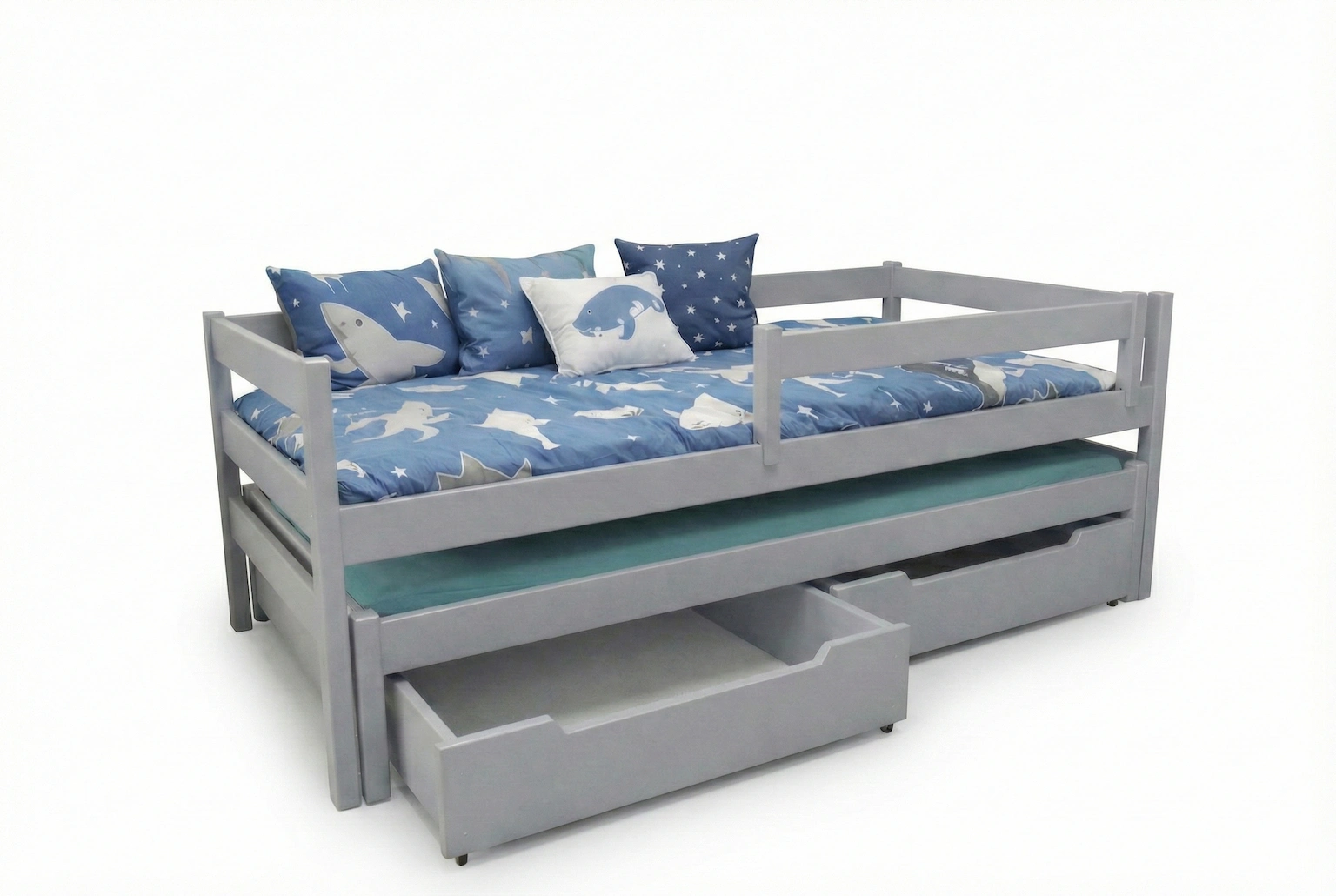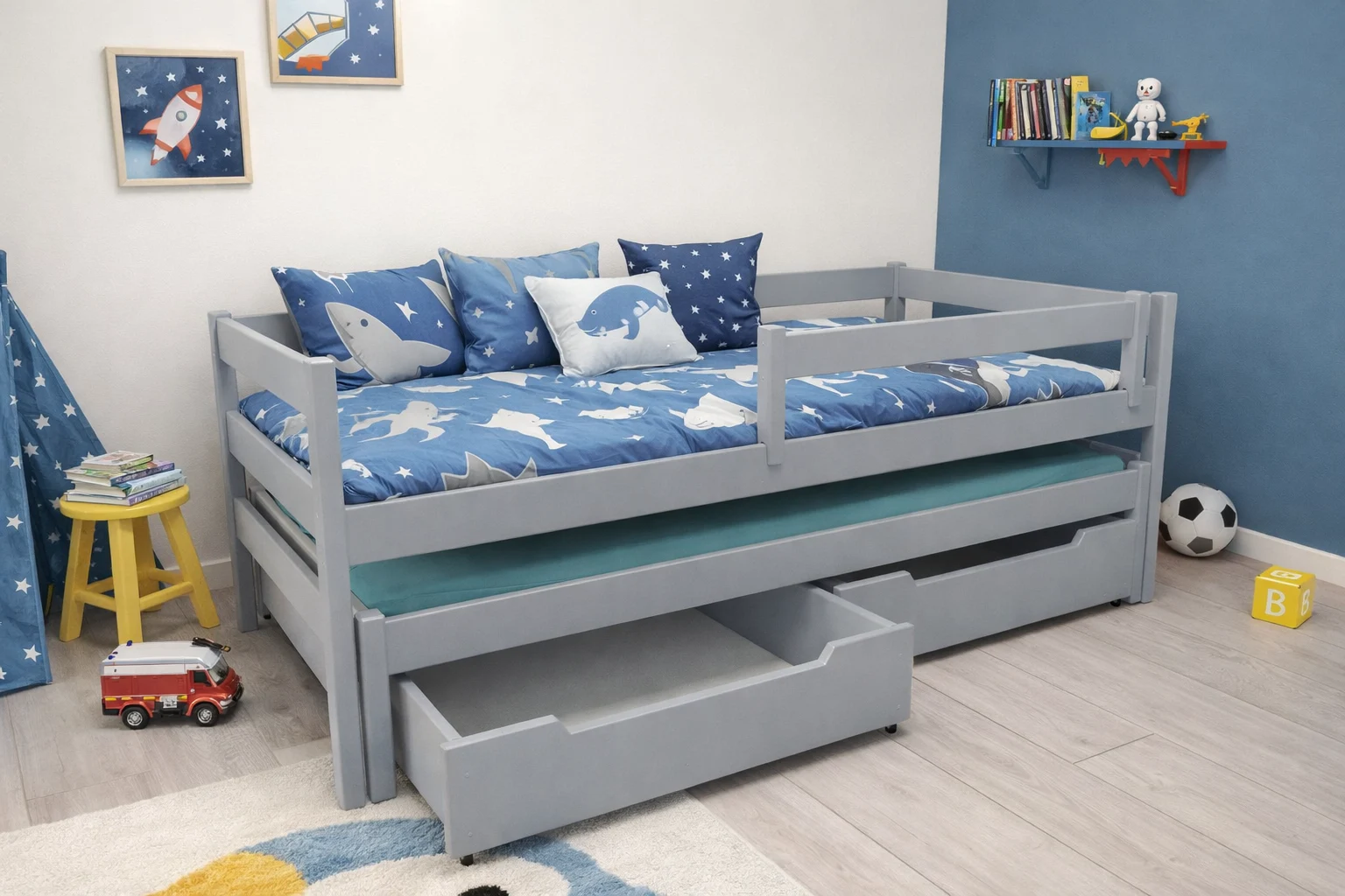 Łóżko wysuwane dla chłopca Maxi PREMIUM kolor szary / popiel