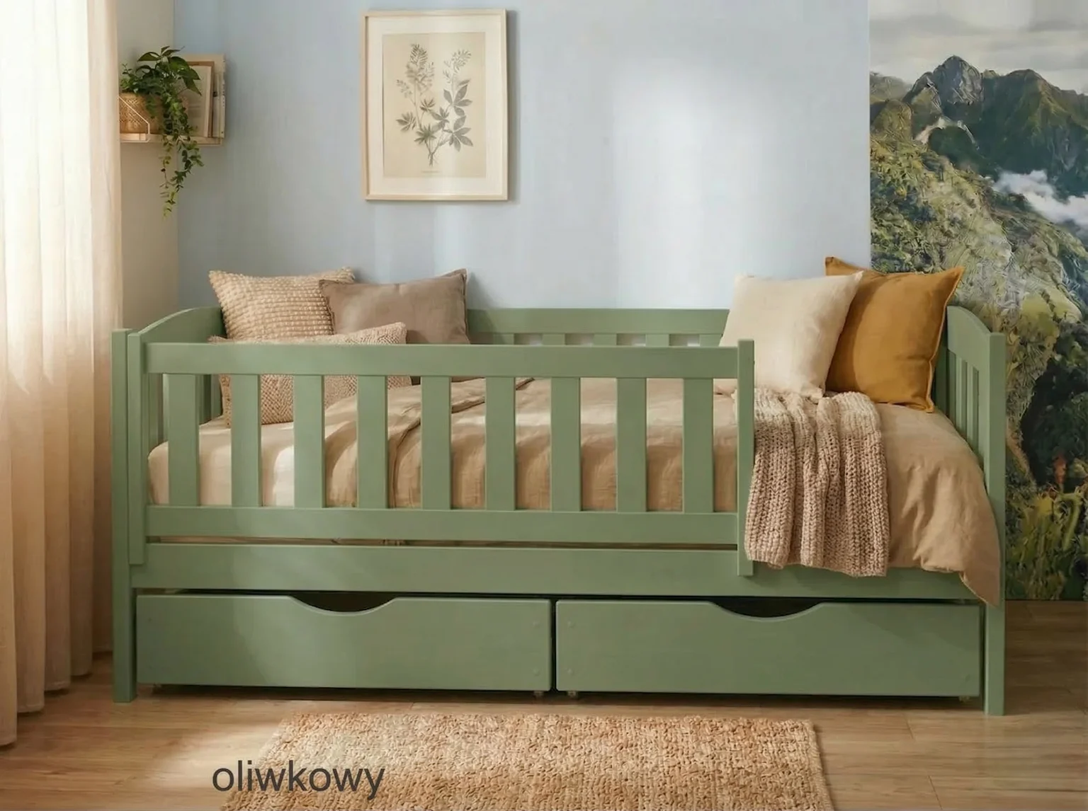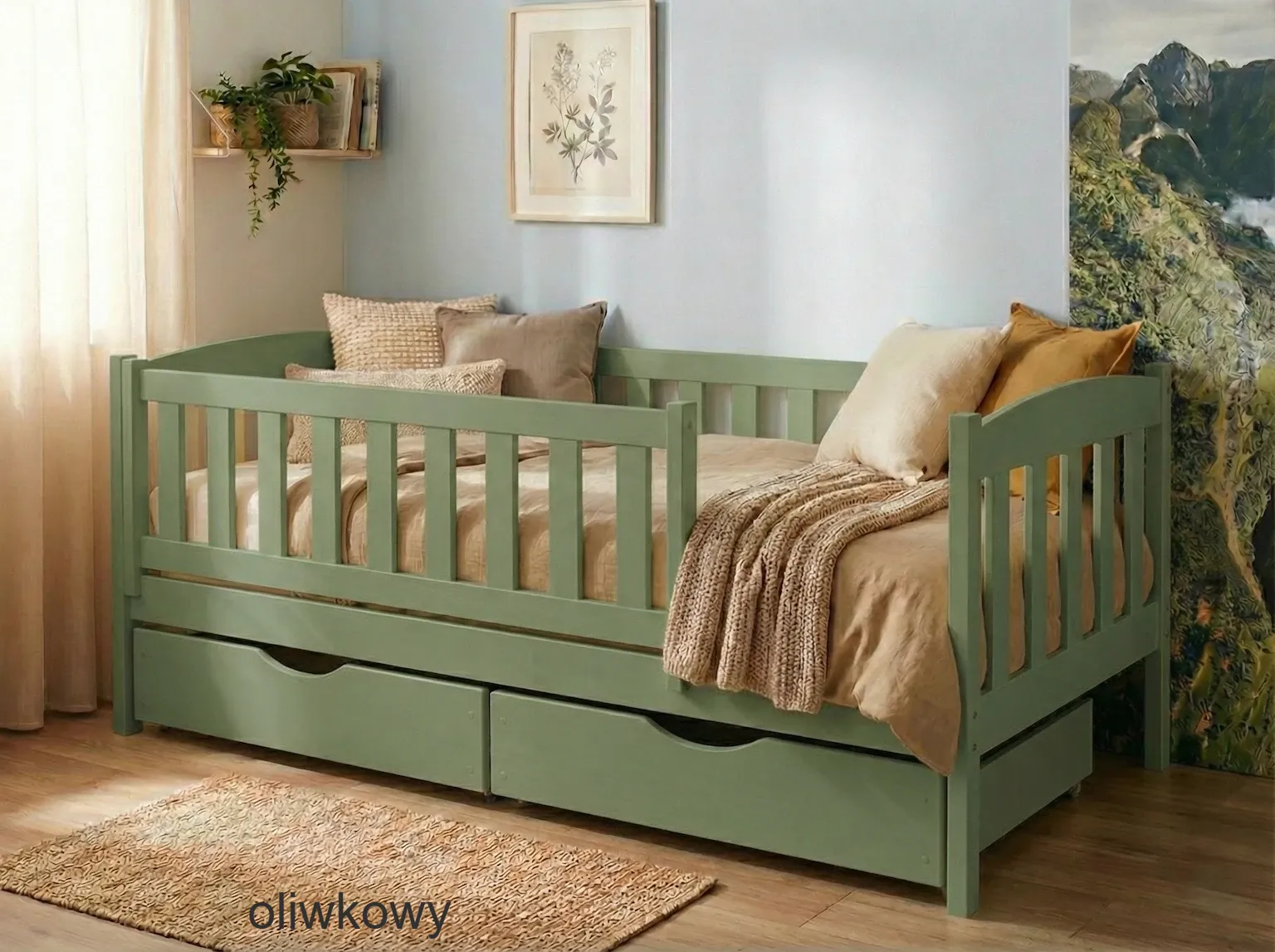 Łóżko dla dziecka - BETI PREMIUM kolor oliwkowy