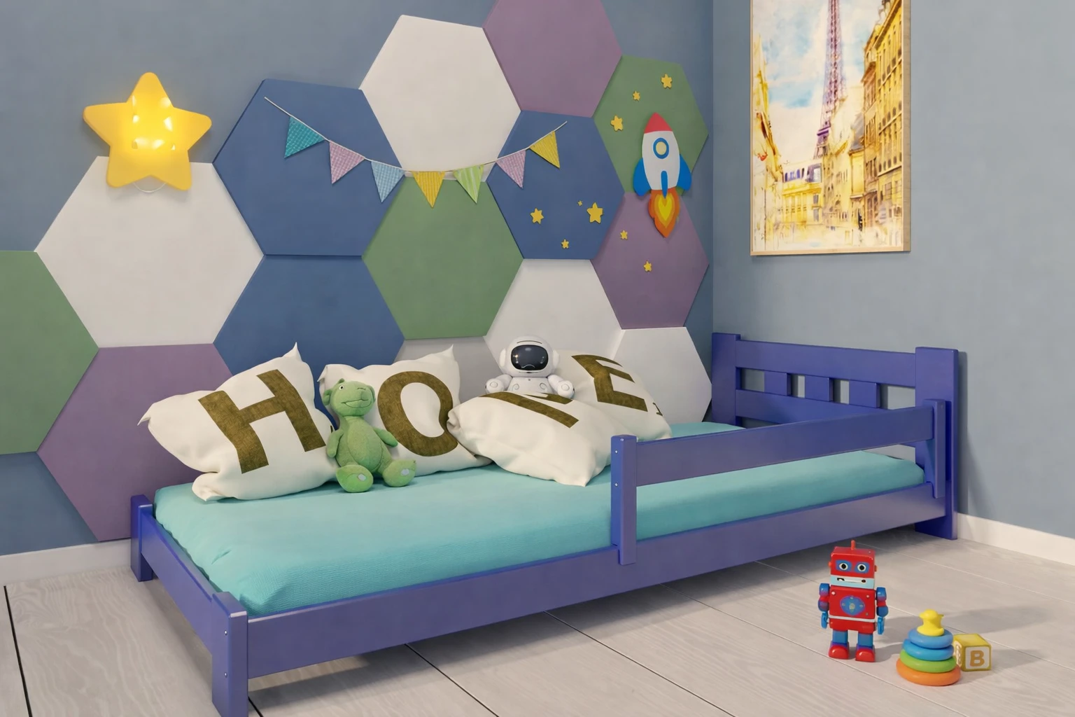 Niskie, drewniane, błękitne łóżko Paweł Low, stworzone z myślą o wyjątkowym komforcie Twojego dwulatka. Solidna konstrukcja nie tylko gwarantuje bezpieczeństwo, ale także emanuje subtelnym urokiem. Barierek ściągalnych wygodnie można używać, nadając dodatkową elastyczność i łatwość w użytkowaniu.