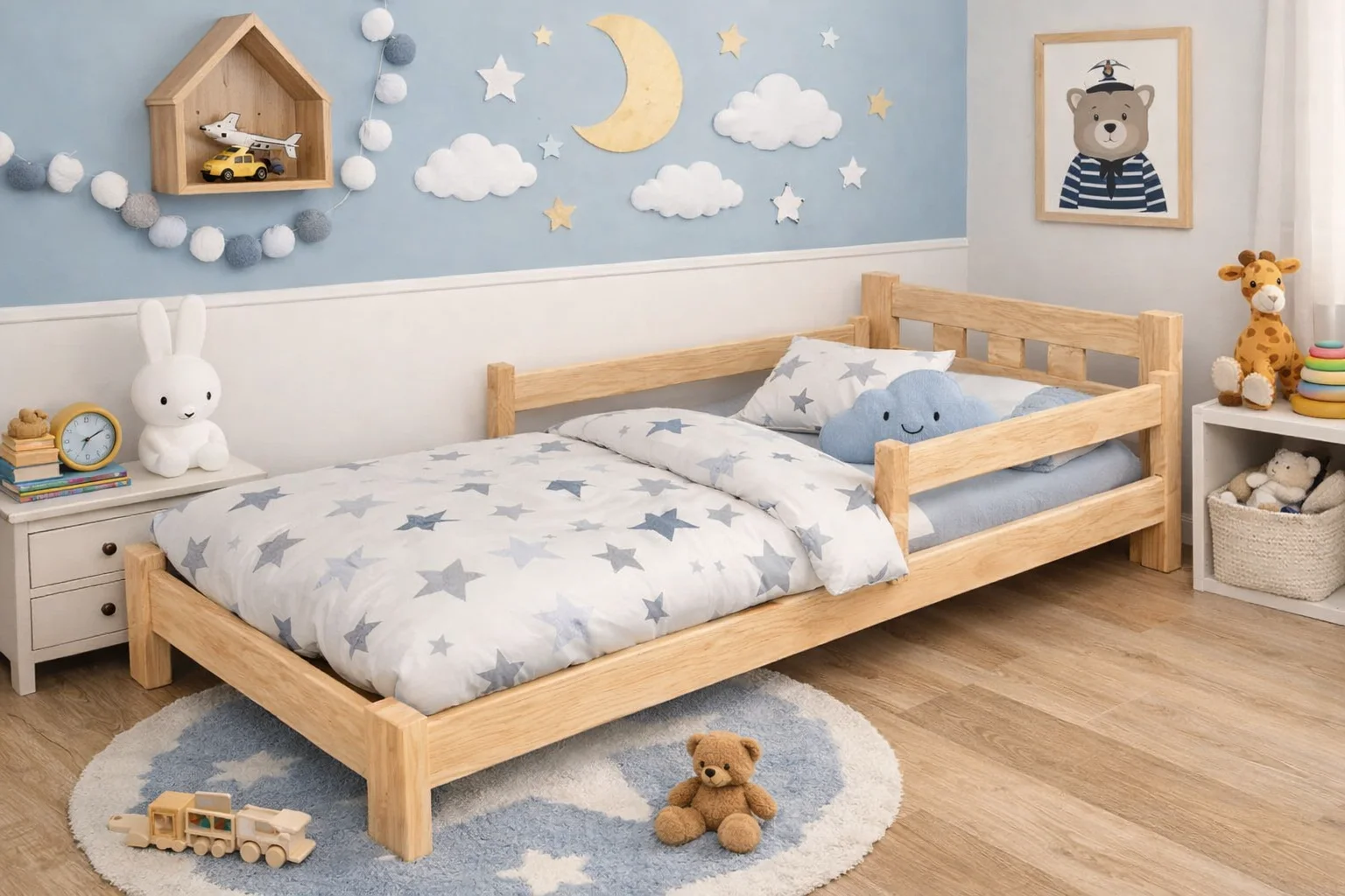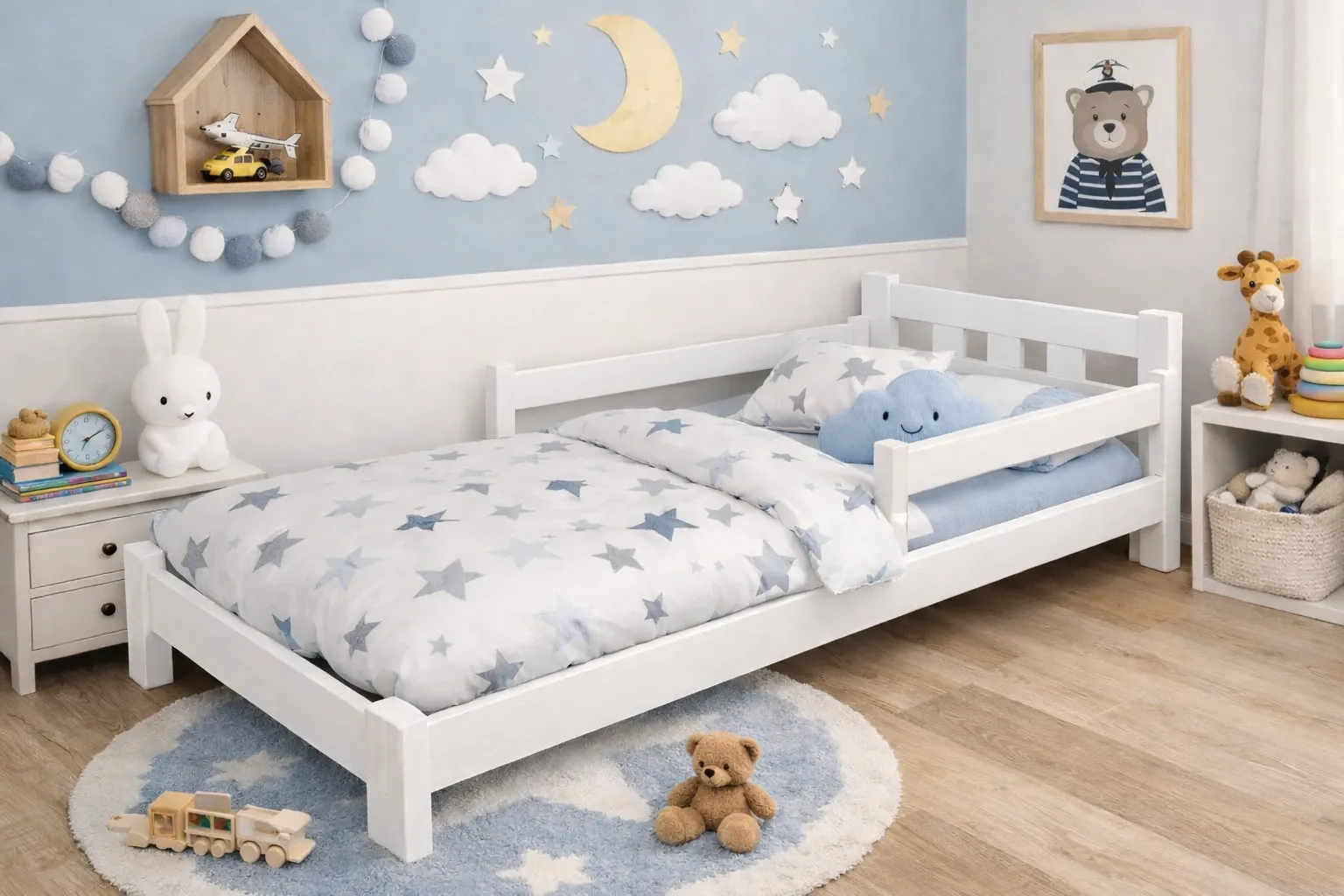 Nasze łóżka wyróżniają się nie tylko doskonałym wykończeniem, lecz także innowacyjną, mobilną barierką zabezpieczającą dzieci podczas snu.