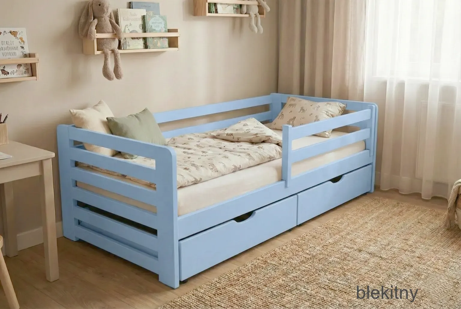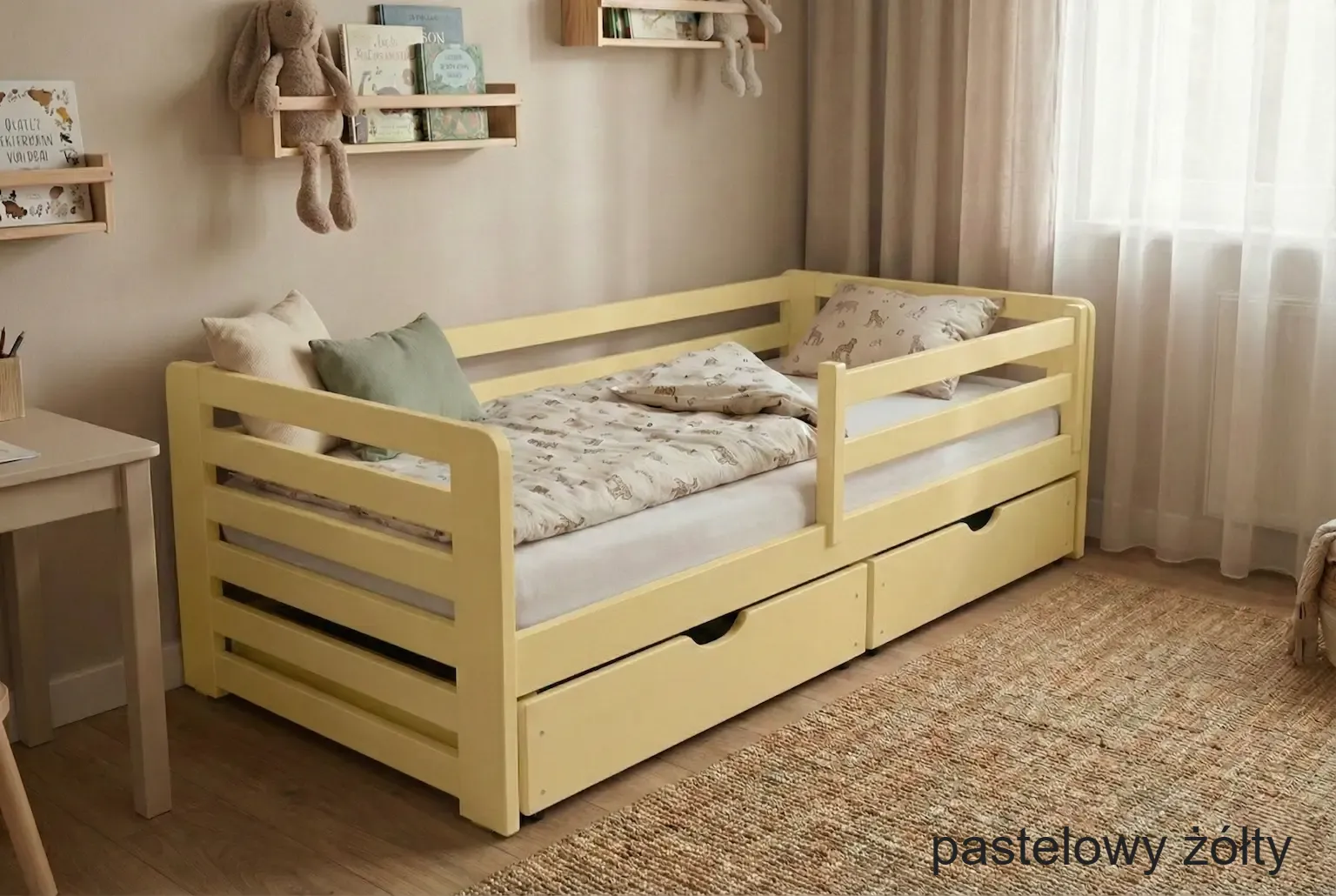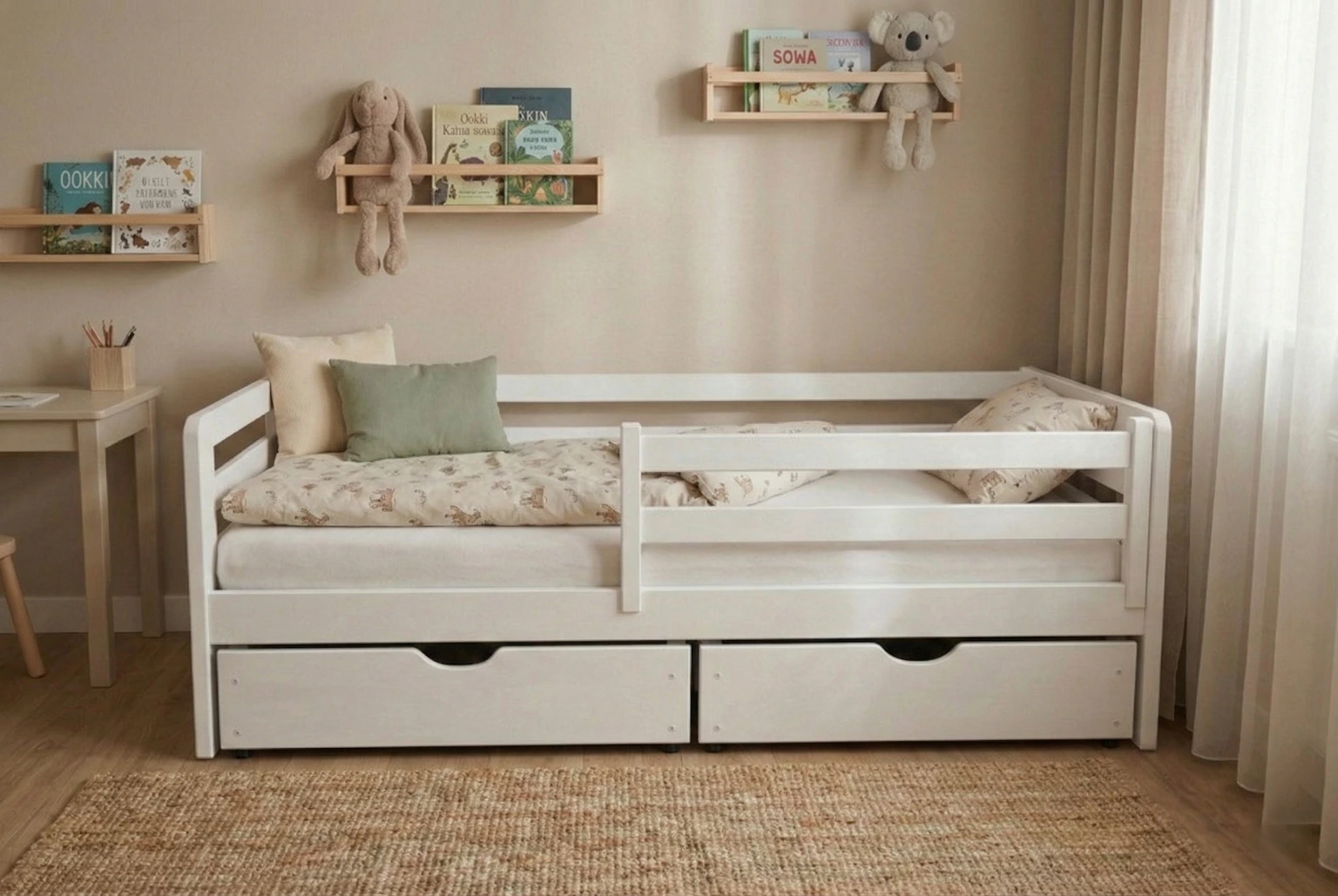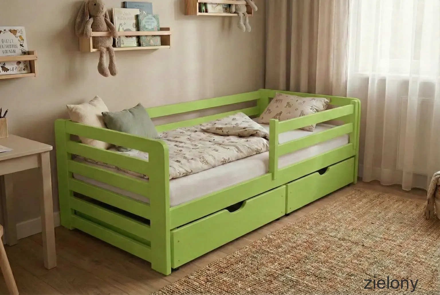 Nasze łóżka wyróżniają się nie tylko doskonałym wykończeniem, lecz także innowacyjną, mobilną barierką zabezpieczającą dzieci podczas snu.