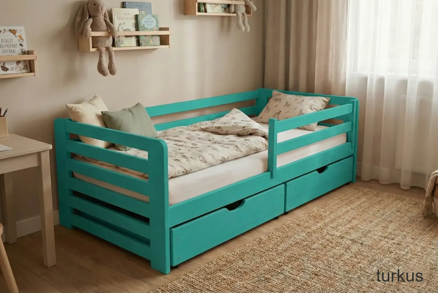 Stelaż z litego drewna sprawia, że nasze łóżka charakteryzują się imponującą wytrzymałością do 150 kg. Zapewnia to nie tylko komfortowy sen, ale także bezpieczne i stabilne miejsce, gdzie dzieci mogą bez obaw cieszyć się swoim czasem w trakcie zabawy czy odpoczynku.