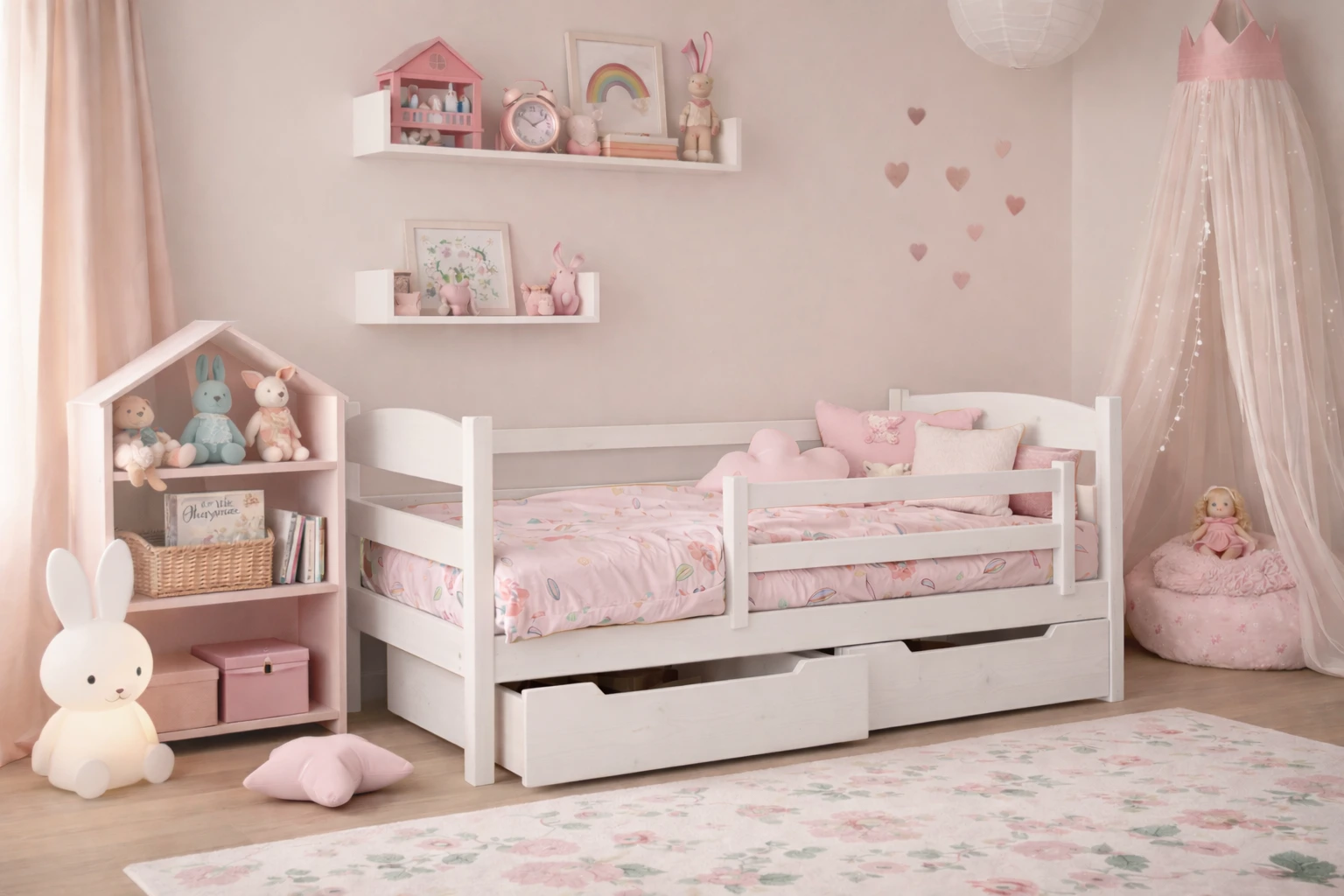 Nasze łóżka wyróżniają się nie tylko doskonałym wykończeniem, lecz także innowacyjną, mobilną barierką zabezpieczającą dzieci podczas snu.