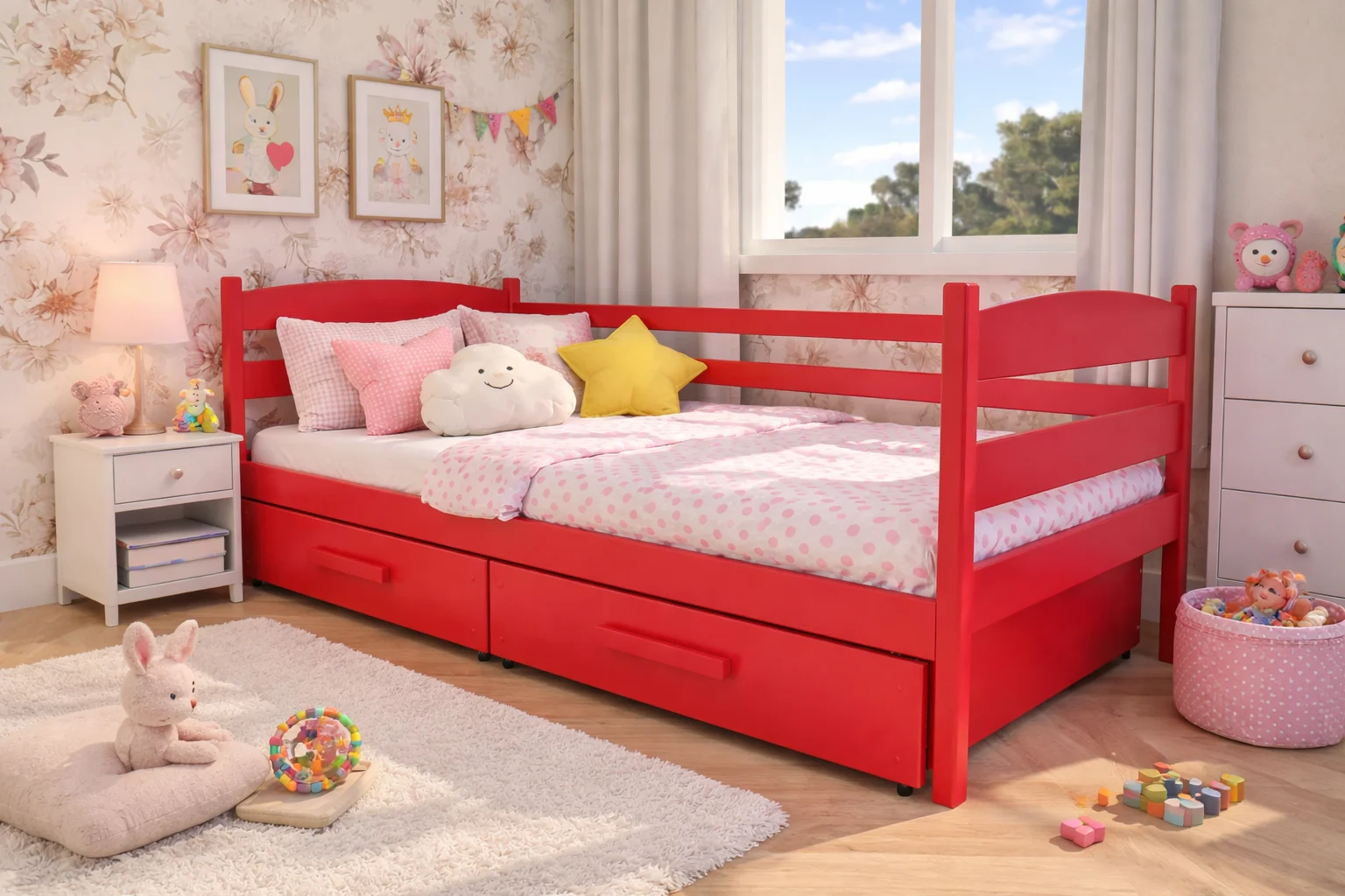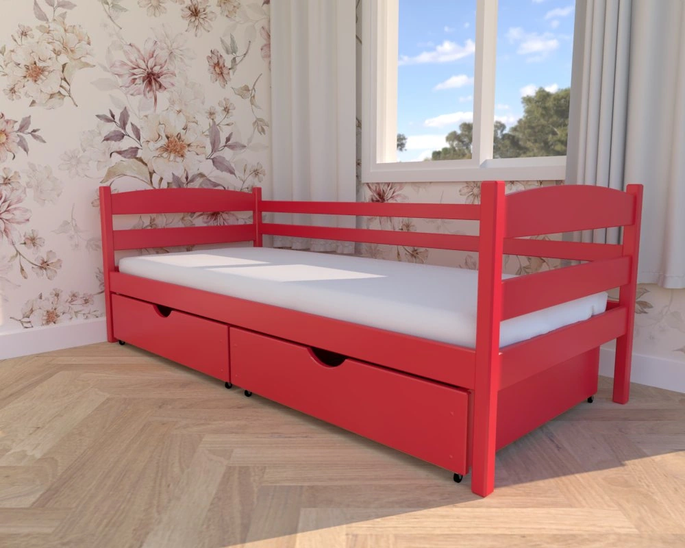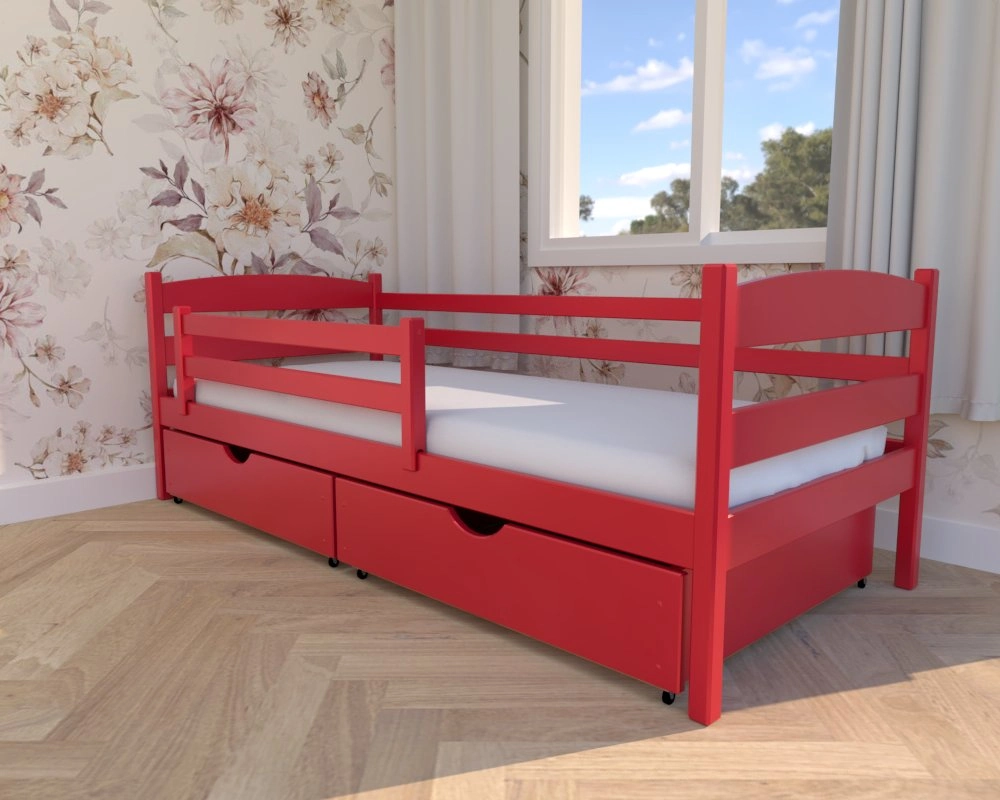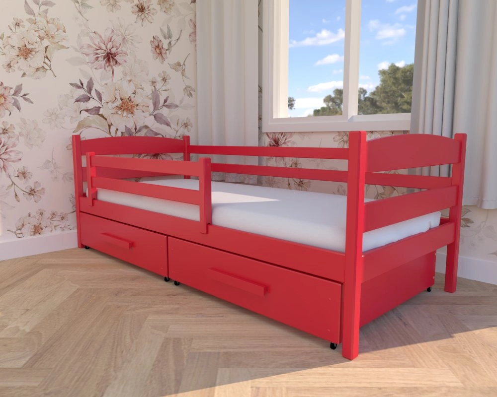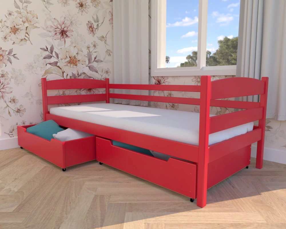Julia Premium czerwone – drewniane łóżko dziecięce od Valor Meble z praktycznymi szufladami