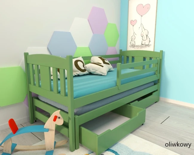 Jednym z walorów naszych łóżek jest również mobilna barierka zabezpieczająca dzieci w czasie snu.