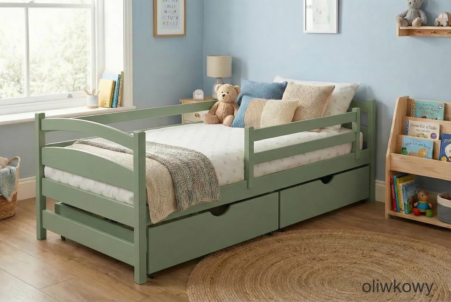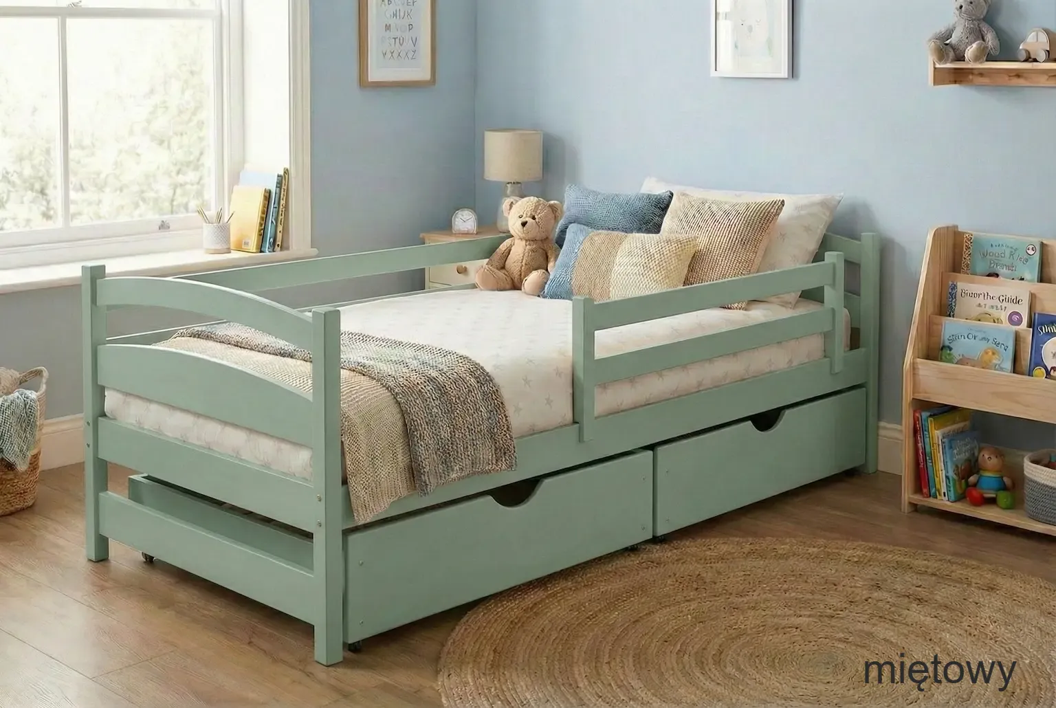 Nasze łóżka wyróżniają się nie tylko doskonałym wykończeniem, lecz także innowacyjną, mobilną barierką zabezpieczającą dzieci podczas snu.