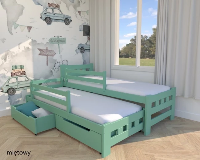 Łóżko rozsuwane Paweł HIGH PREMIUM w kolorze miętowym – idealne łóżko dla dzieci i młodzieży, które wniesie świeżość do pięknego pokoju.