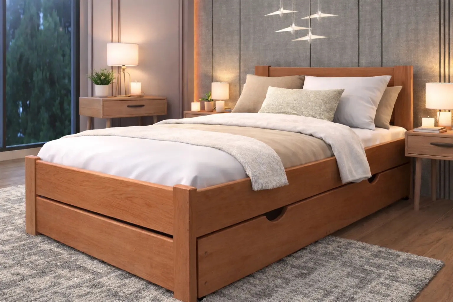 Szuflada w łóżku Boomer Premium również w całości wykonana jest z drewna!