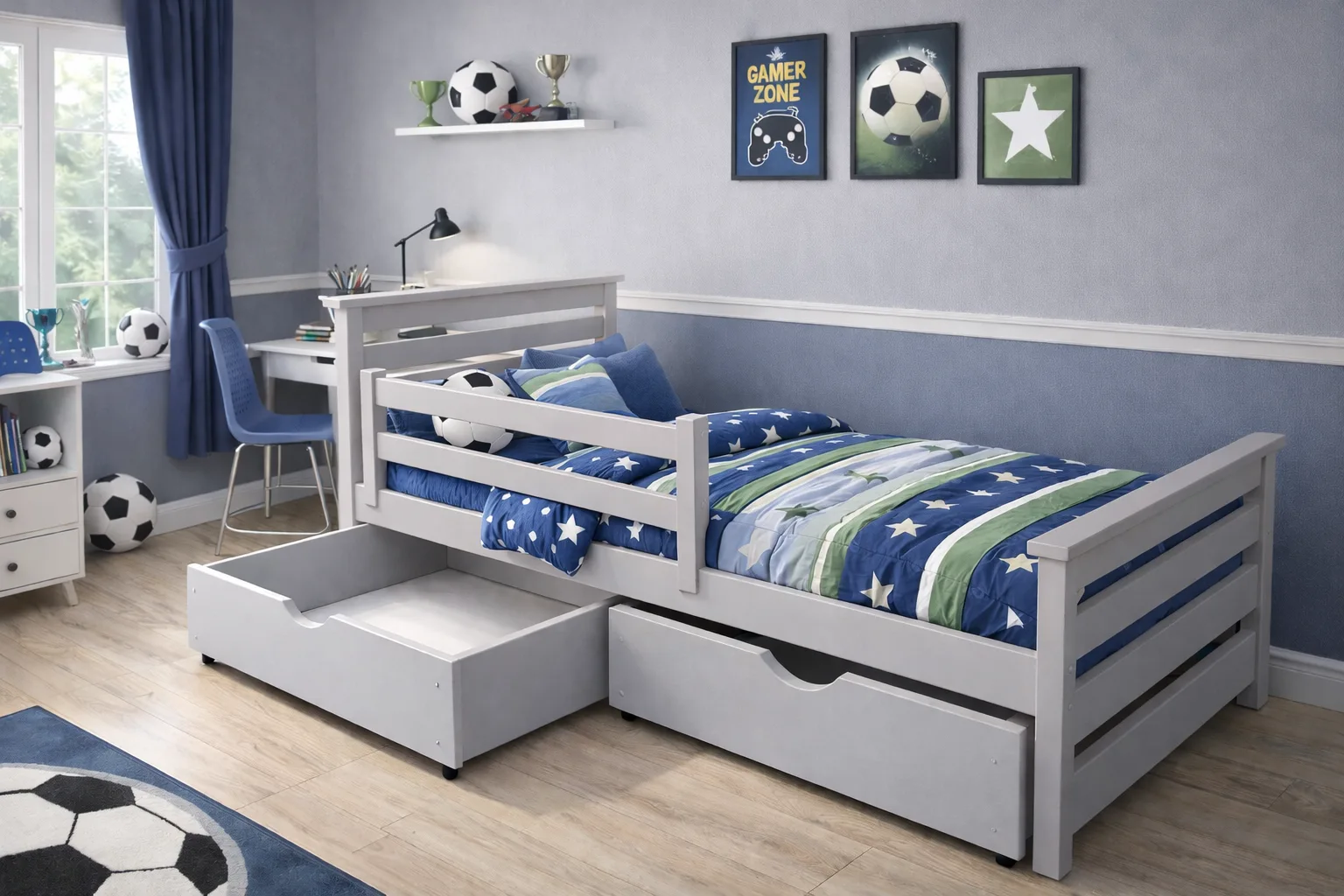 Dodanie barierki zabezpieczającej sprawia, że łóżko będzie bezpieczne również dla najmłodszych.