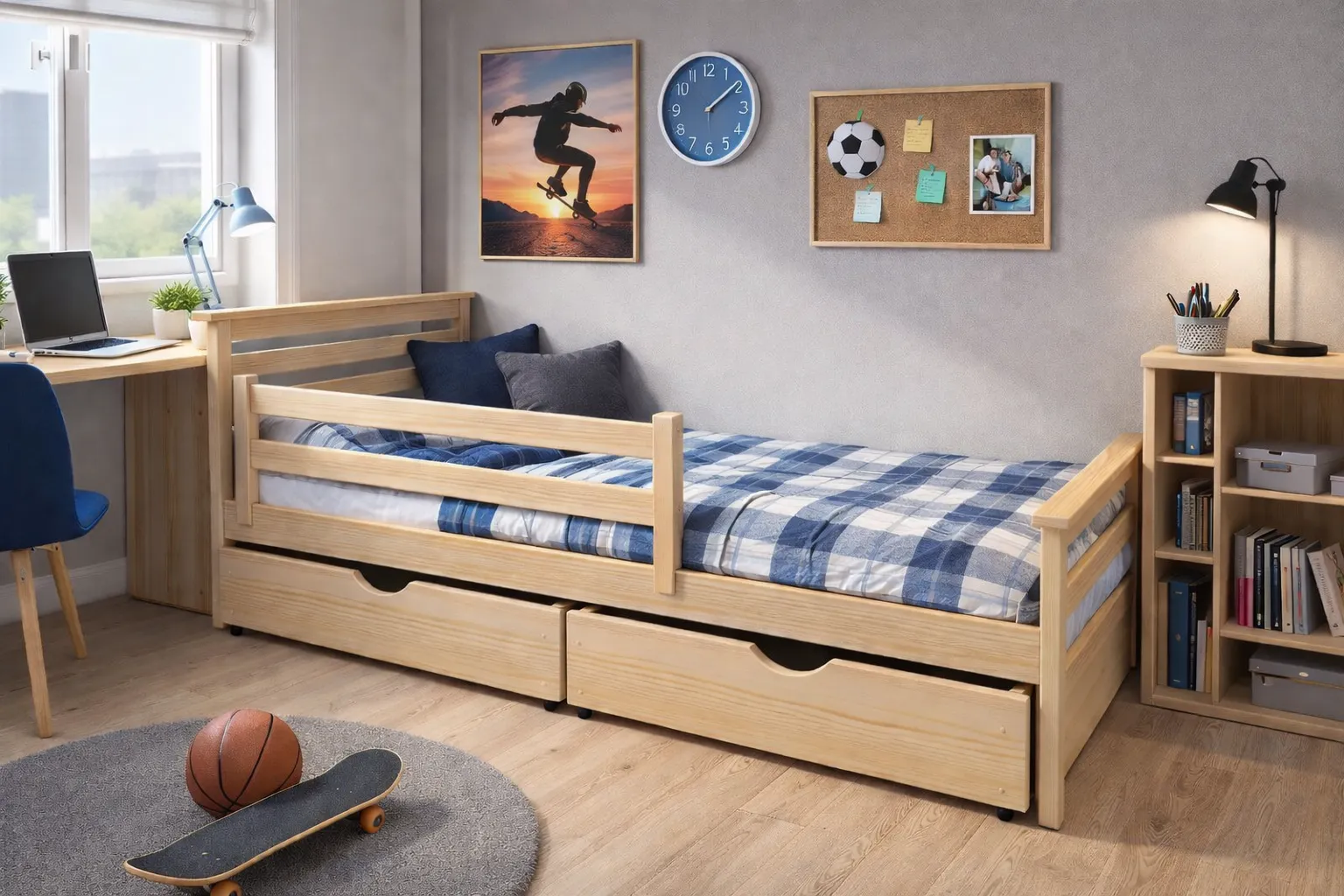 Dodanie barierki zabezpieczającej sprawia, że łóżko będzie bezpieczne również dla najmłodszych.