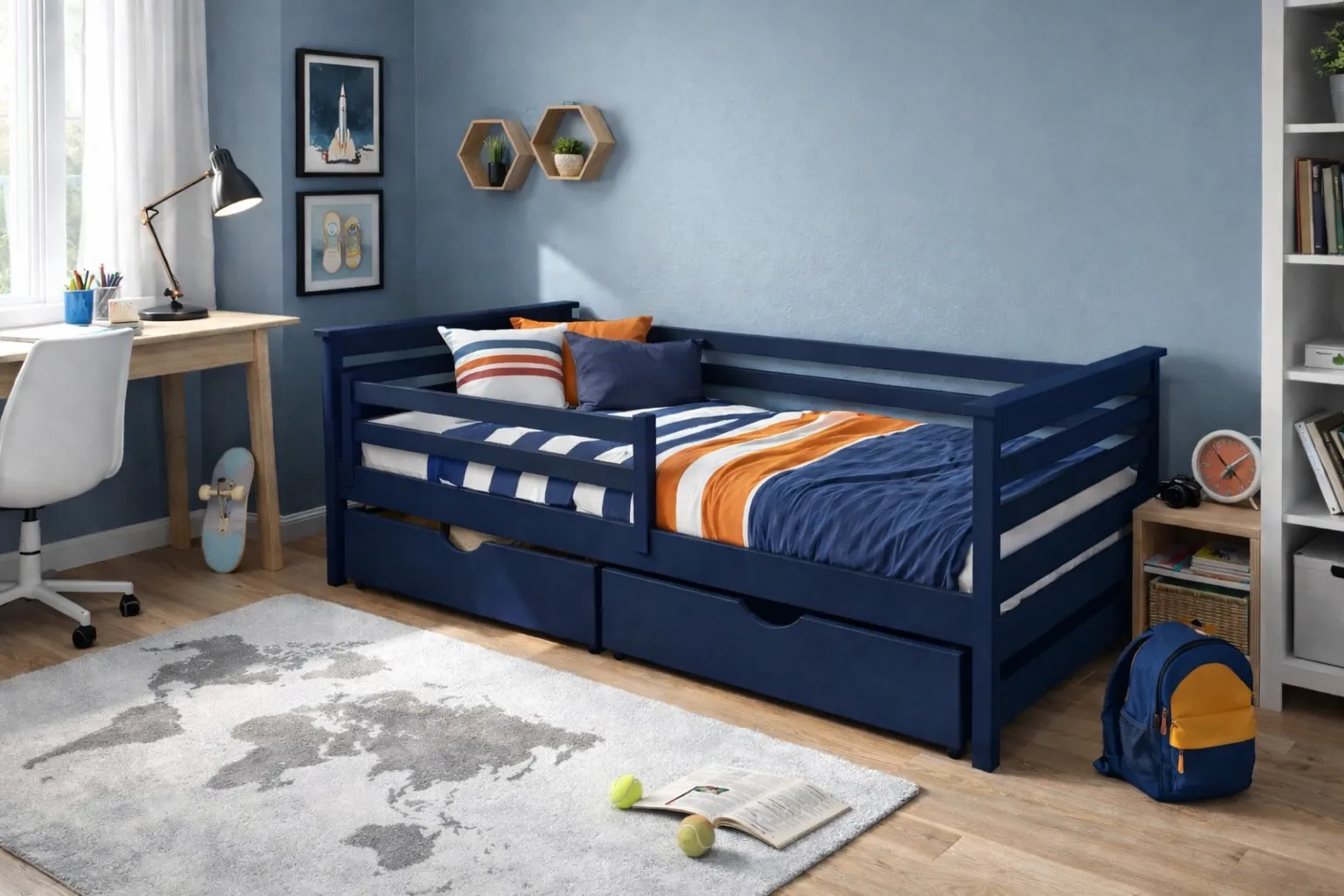 Jednym z walorów naszych łóżek jest również mobilna barierka zabezpieczająca dzieci w czasie snu.