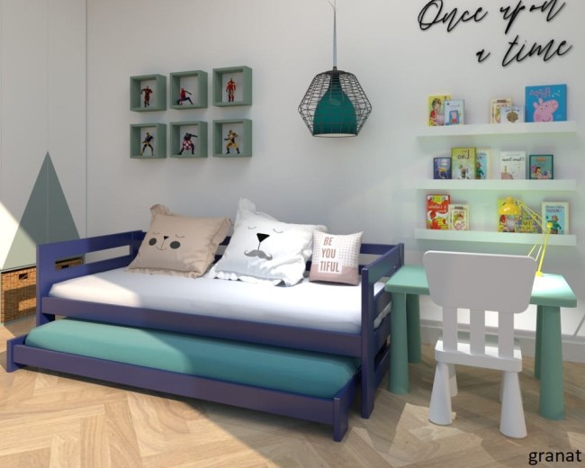 Łóżko Kubi Low Premium to niskie łóżko podwójne wysuwane, zaprojektowane z myślą o najmniejszych użytkownikach.