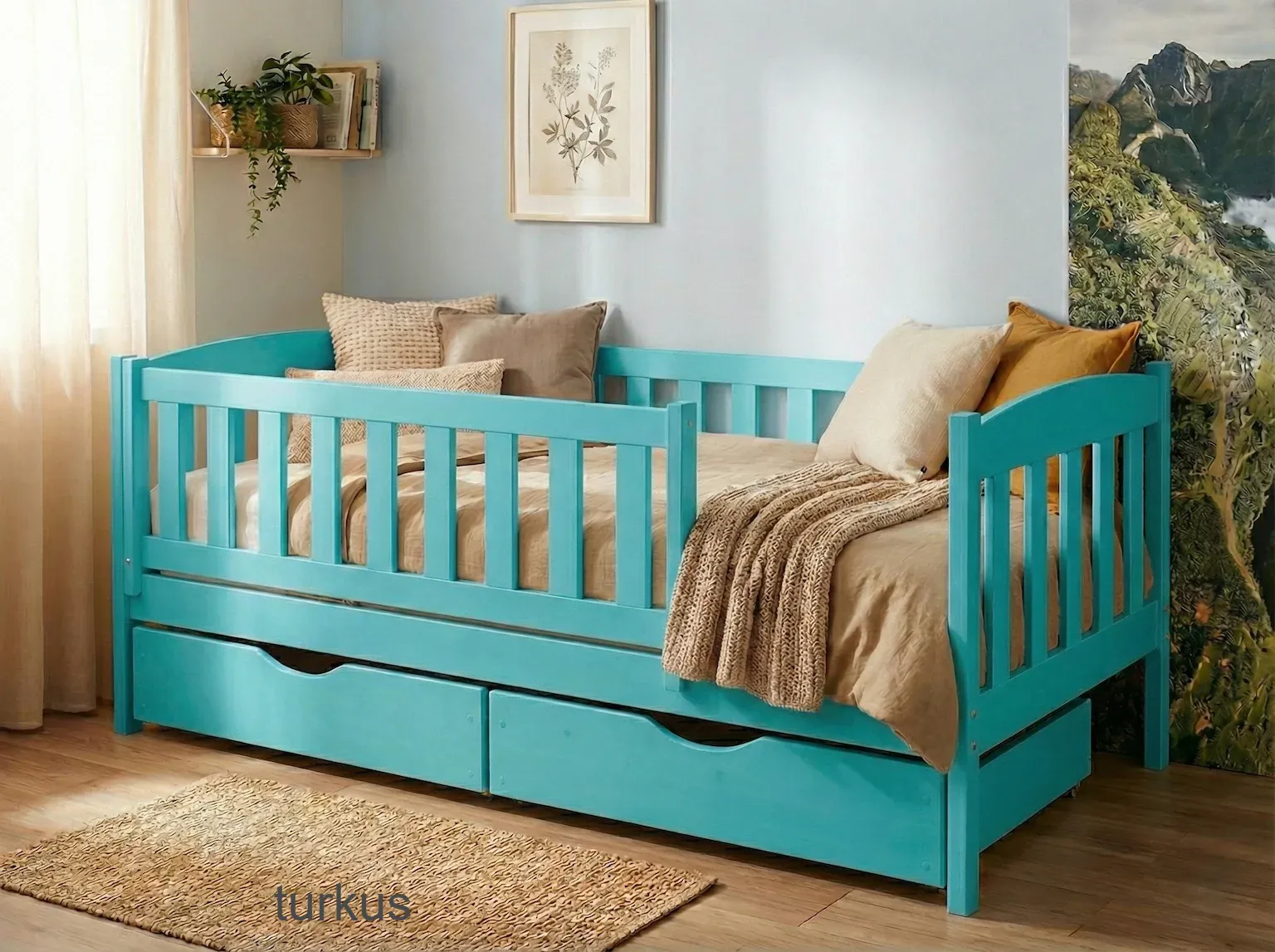 Łóżko dla dziecka - BETI PREMIUM kolor turkusowy