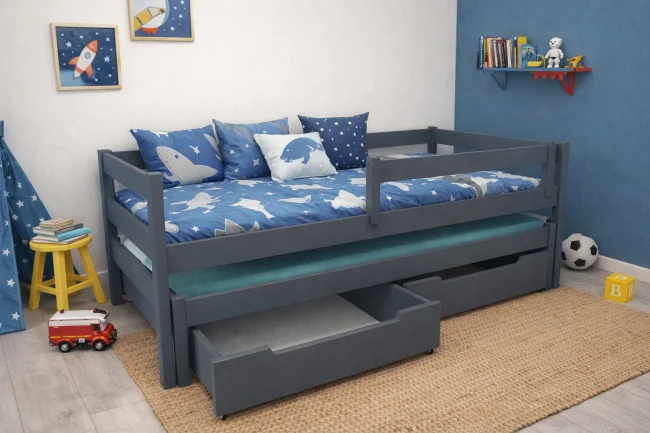 Łóżko drewniane - Maxi PREMIUM kolor grafitowy