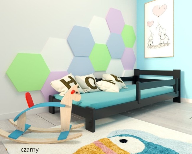 Łóżko Paweł 2 Low Premium w kolorze czarnym to stylowy i nowoczesny wybór, który świetnie sprawdzi się w pokoju dziecka, zapewniając mu bezpieczeństwo oraz komfortowy sen.