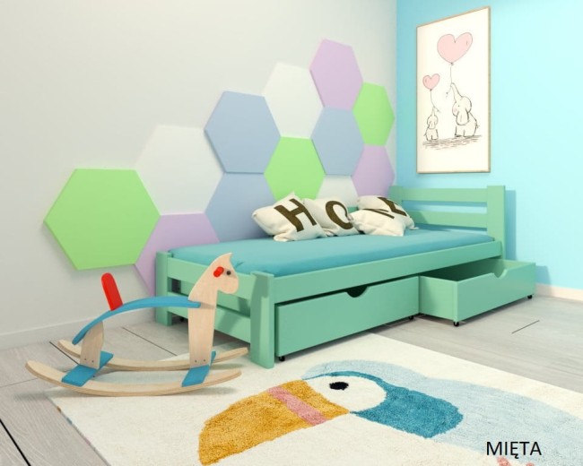Łóżko drewniane - Paweł 2 PREMIUM kolor miętowy