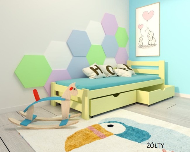 Łóżko drewniane - Paweł 2 PREMIUM kolor pastelowy żółty
