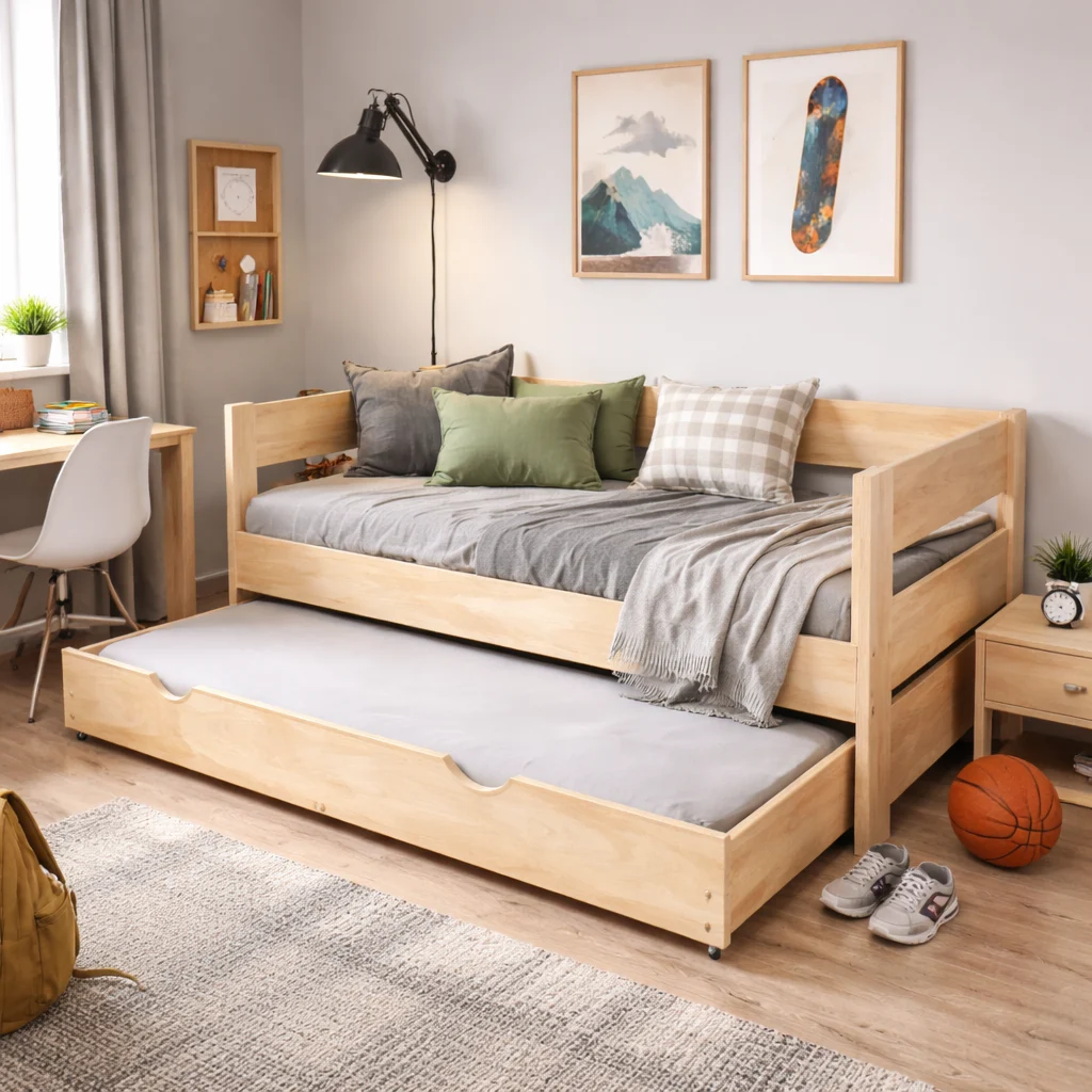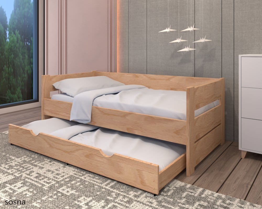 To najwyższej jakości drewniane łóżko podwójne wysuwane wykonane w 100% z drewna sosnowego Premium.