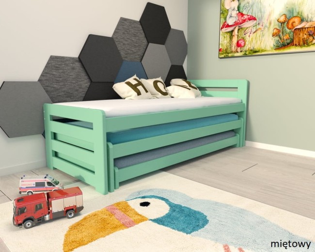 Łóżko rozsuwane 3 osobowe - Fox 2 PREMIUM kolor miętowy