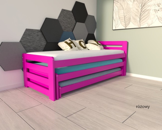 Łóżko rozsuwane 3 osobowe - Fox 2 PREMIUM kolor różowy