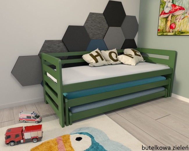 Łóżko rozsuwane 3 osobowe - Fox PREMIUM kolor butelkowa zieleń