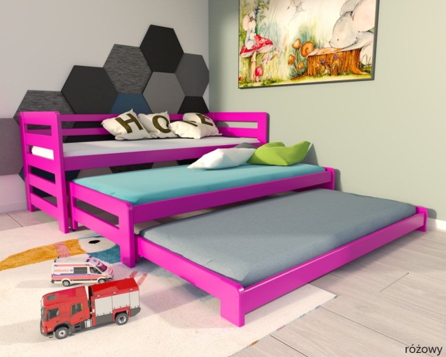 Łóżko rozsuwane 3 osobowe - Fox PREMIUM kolor różowy