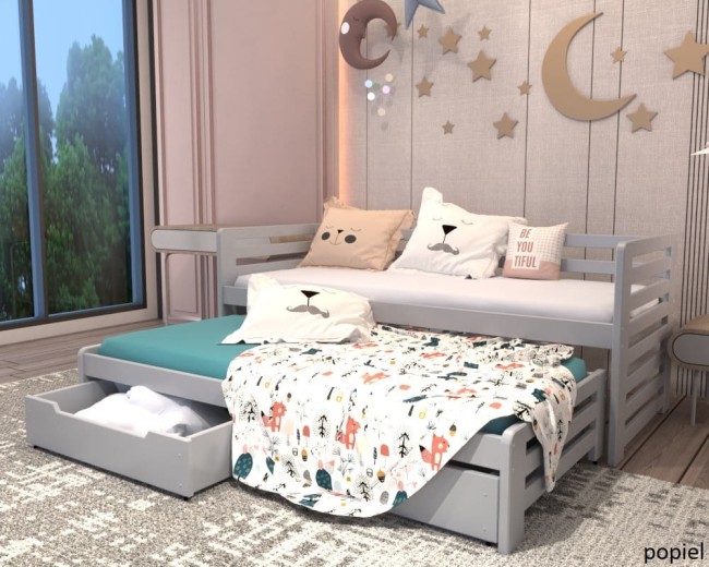 Dolne łóżko wysuwane posiada materac o 10 cm krótszy.
