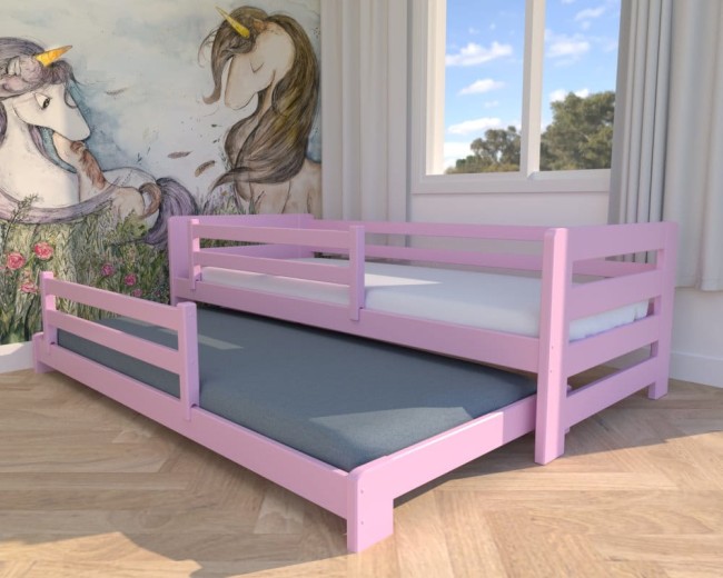 Łóżko rozsuwane - Jasio LOW PREMIUM kolor pastelowy róż