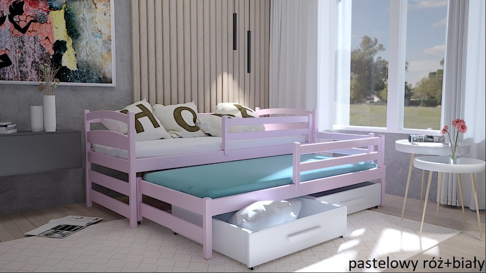 Łóżko rozsuwane - Maja PREMIUM kolor pastelowy róż