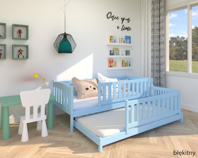 Łóżko wysuwane - Hania Low PREMIUM kolor błękitny
