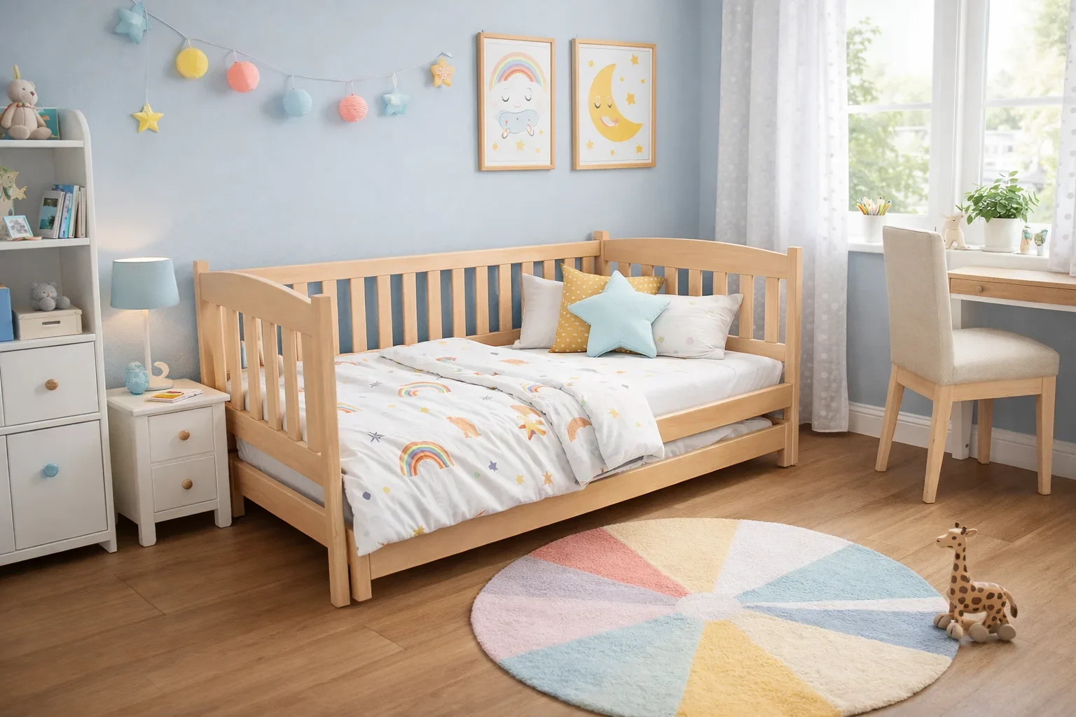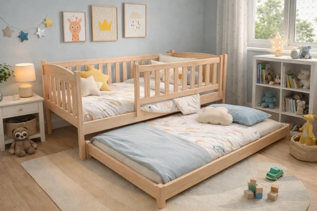 Jednym z walorów naszych łóżek jest również mobilna barierka zabezpieczająca dzieci w czasie snu.
