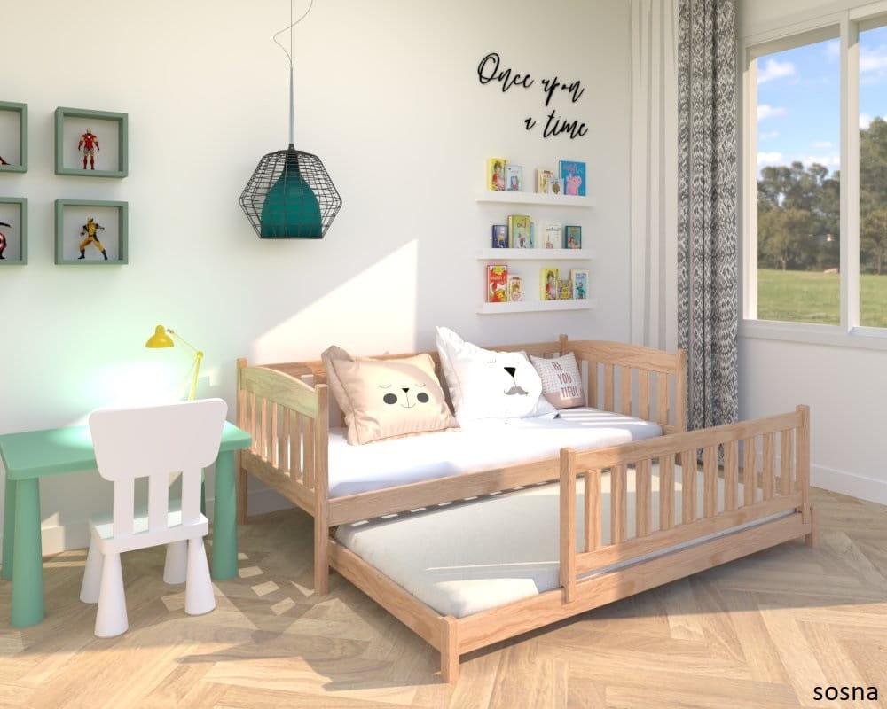Łóżko wysuwane - Hania Low PREMIUM kolor sosna-naturalny